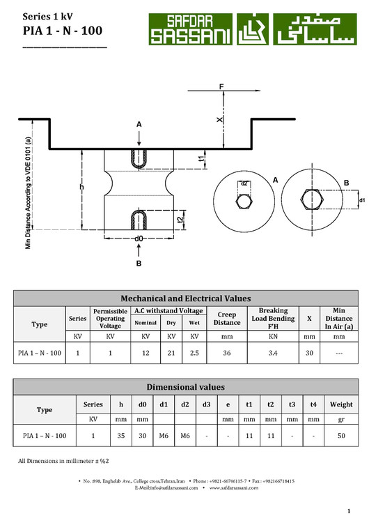 مقره رزینی N100 یک کیلوولت صفدر ساسانی