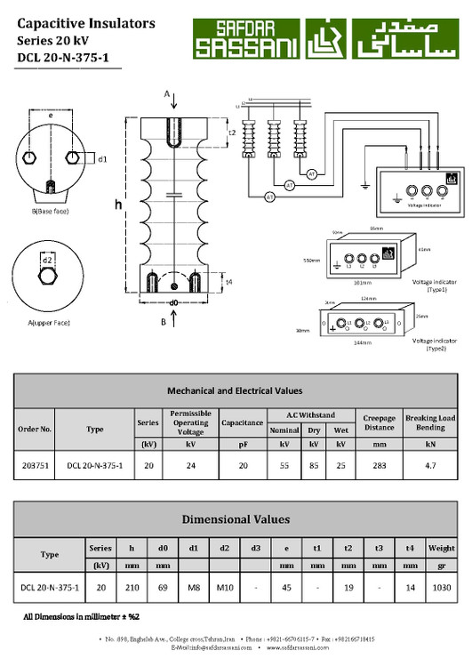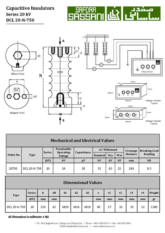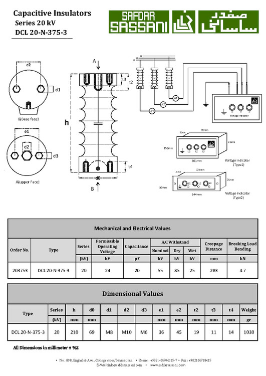 مقره خازنی 20 کیلوولت (24 کیلوولت) به همراه نشان دهنده ولتاژ